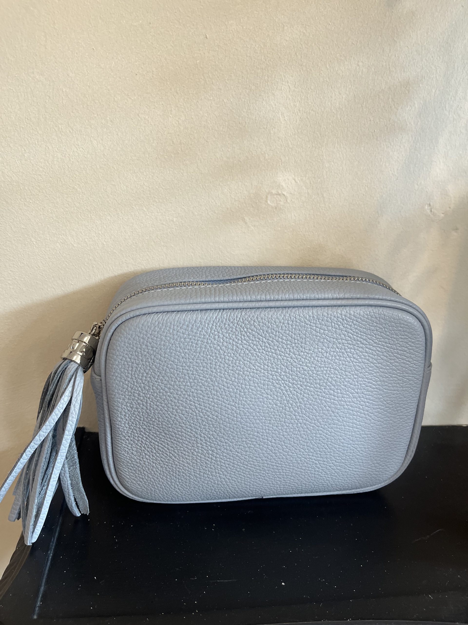 Well-designed Leather Crossbody Bag Camera Bag; Comes with a Detachable Long Strap and a Stylish Tassel key Ring; Bag strap: Length (including clasps): 120cm-135cm; Outer material: Italian Leather; Closure: Zipper; Hardware Colour: Silver